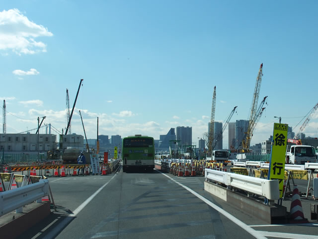 勝どき橋に差し掛かると、晴海トリトンスクエアが見えきました。この周辺は、下町と開発された場所が入り混じっており、「夜に走ると綺麗でオススメです」と河口さん。東京オリンピックの影響で、様々な場所が工事されているので、来るたびに景色や道が変わっていて、ドライブコースとして最適なのだとか。河口さん自身も今回訪れてみて、景色の変わりように驚いていました!